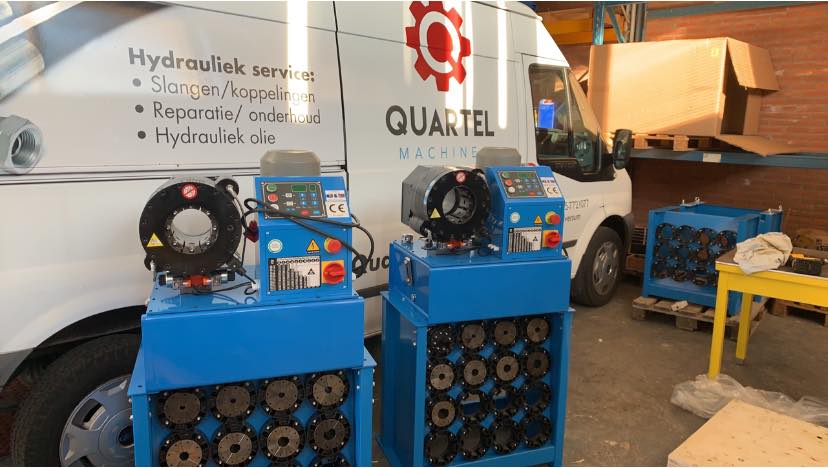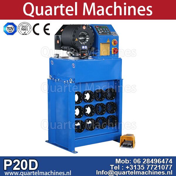 P20 digitaal hydraulische slangpers met snelwisselsysteem en alle persbekken . Deze machine perst hydraulische slangen tot 1,1/2′ voor de hoogste kwaliteit. Pers gemaakt van de beste componenten (SIEMENS-motor, EATON-schakelaar, Rexroth-pomp) TOP machine!!